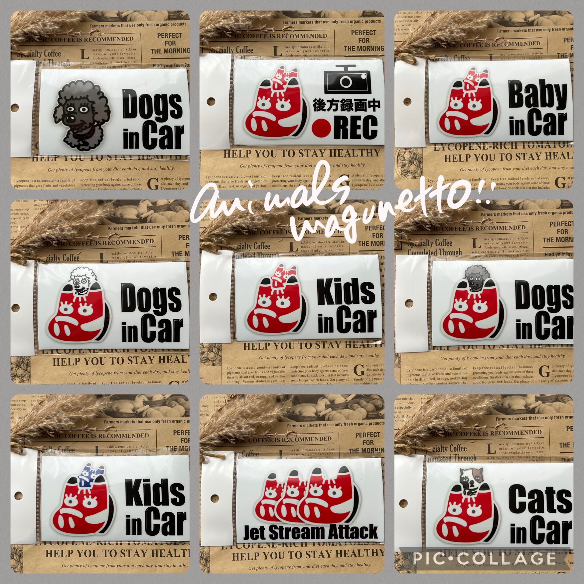 福を呼ぶ「赤べこ」× マグネットプレート(送料込)cats in car白